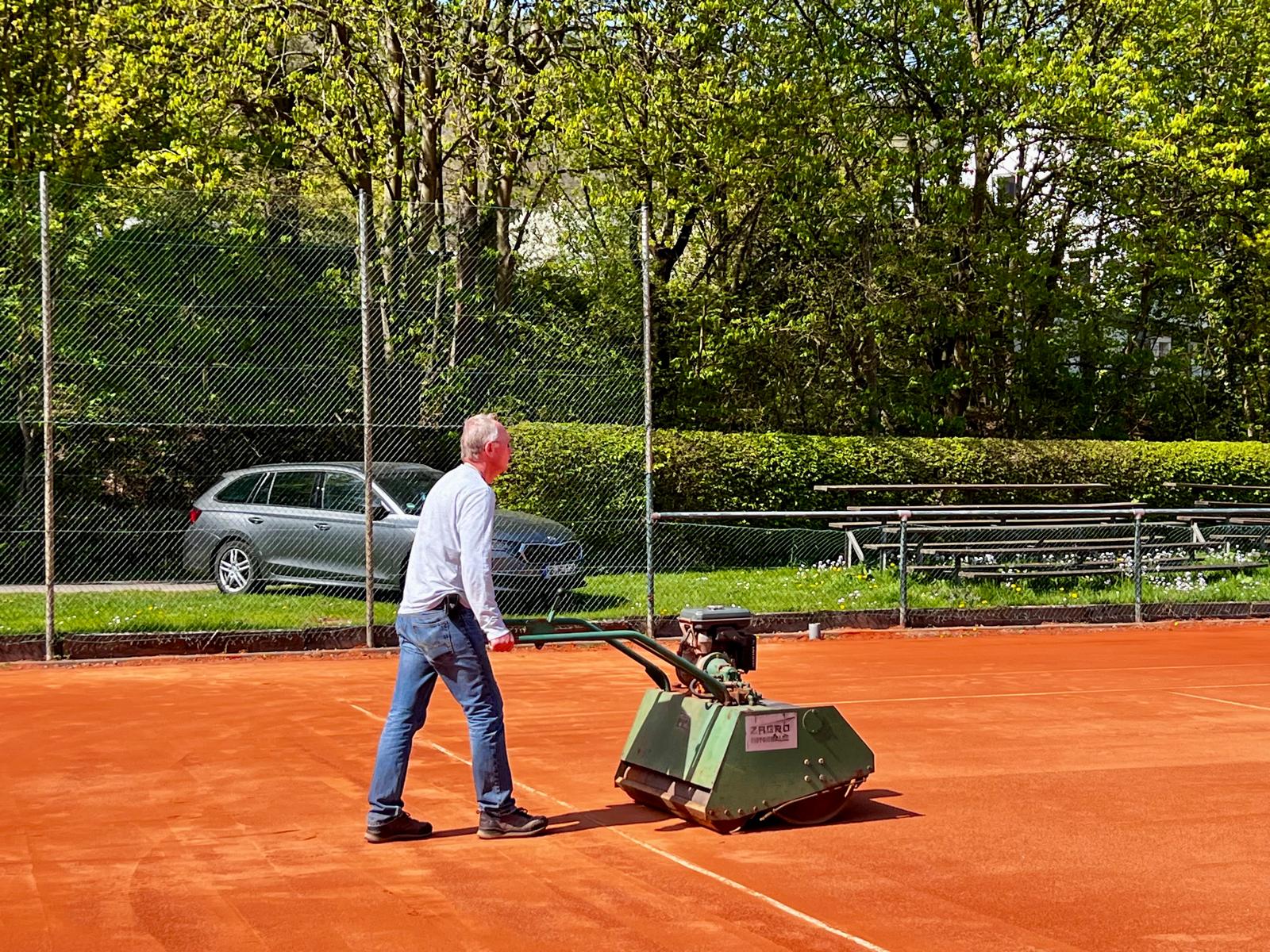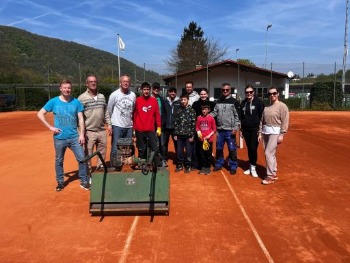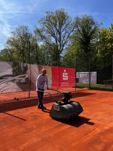 Am heutigen Sonntag stand der alljährliche Frühjahrsputz an. Einige engagierte Mitglieder brachten unsere Anlage in einen frischen und saisonbereiten Zustand. Der neue Sand auf den Tennisplätzen wurde final gewalzt. Anschließend wurden Netze, Banner und Bänke auf den Plätzen aufgestellt. Somit sind die Plätze für die Sommersaison 2026 startklar und können bereits ab dem 15.04.2026 bespielt werden. Damit wir auch weiterhin Freude an unseren Plätzen haben, ist es wichtig, dass ihr Löcher und Dellen (besonders in den ersten Tagen der Saison) mit den Kanthölzern ausbessert und die Plätze vor und nach dem Spielen gründlich wässert.